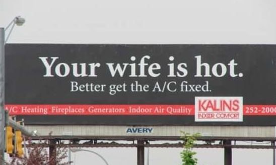 Last but certainly not least: Kalins Indoor Comfort takes a humorous approach to billboard marketing with this clever play on words.