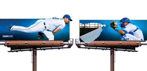 This action-packed billboard features two Royals players warming up before a big game. Longing for peanuts and Cracker Jack yet?