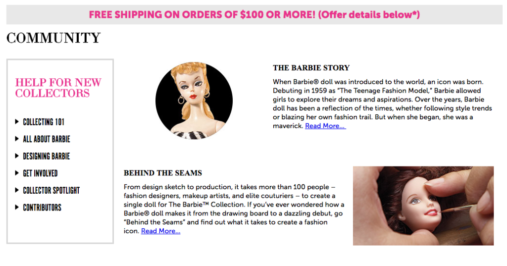 Barbie has been around for decades, amassing more than 100,000 collectors over the years. The Barbie Collection site is frequented by many of these fans, who gather to discuss common interests and connect with other enthusiasts.