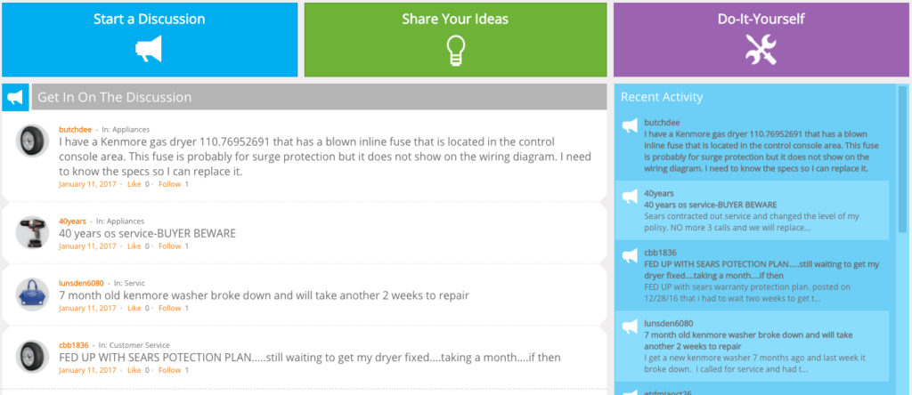 MySears Community gives Sears shoppers a place to ask questions, discuss products, and share ideas. The user-friendly interface is easy to navigate and fun to browse, resulting in 1.3 million visits to date. Not too shabby.