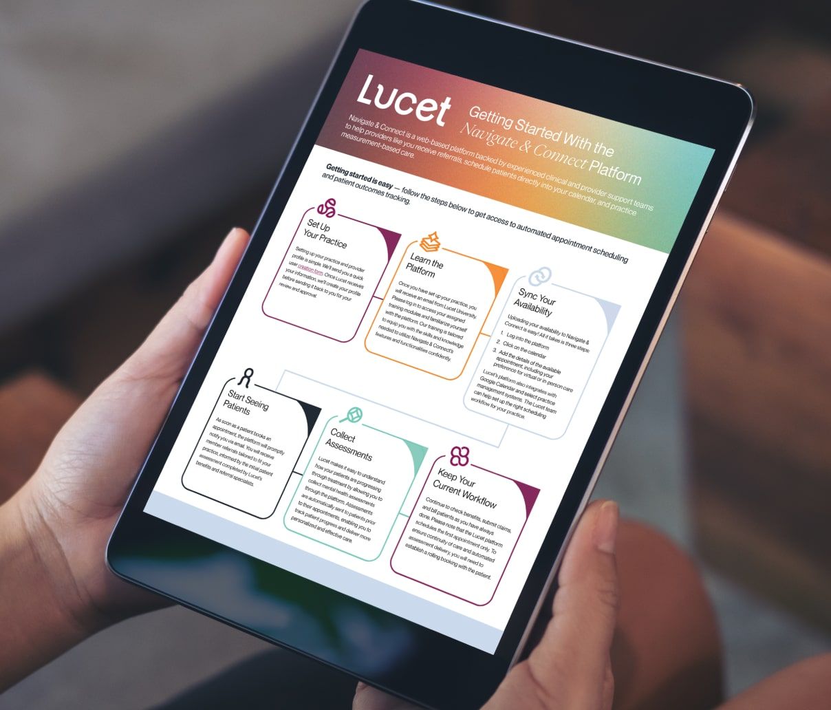 Following the launch, Lucet wanted to leverage their team of in-house physicians to maintain an active content marketing program. Terra designed a custom editorial strategy complete with easy-to-execute workflows and best practices that could be leveraged by non-marketers to produce written content for Lucet's blog and social channels.